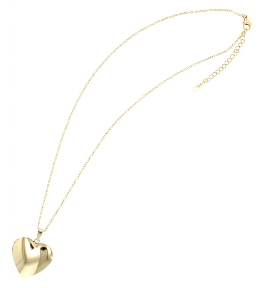 Este colar e o pingente que o acompanha são feitos de aço inoxidável durável, o que os torna resistentes, duradouros e extremamente robustos. A corrente está disponível nas cores prata e ouro para atender a todos os gostos individuais. Com um comprimento de 45 cm e uma corrente adicional de extensão de 5 cm, esta corrente oferece a flexibilidade para se adaptar perfeitamente a qualquer formato de pescoço. O prático mosquetão garante um fecho seguro. O medalhão articulado de 29 x 28 x 7 mm oferece espaço para lembranças pessoais, seja uma foto ou uma mensagem. O pingente de coração altamente polido pode ser gravado na frente e atrás para dar a esta joia um toque muito pessoal.
