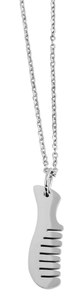 Este colar com padrão de corrente de âncora foi feito de aço inoxidável de alta qualidade, o que significa que é durável e resistente ao desgaste. O colar é completado com um pequeno mas atraente pingente em forma de pente feito do mesmo material de alta qualidade. O pingente 28 x 9 mm não é apenas uma joia linda e especial, mas também pode ter um significado simbólico para muitos. Por exemplo, para entusiastas da beleza e cabeleireiros, este colar é o acessório perfeito e um ótimo presente. O colar tem 43 cm de comprimento e possui mais 5 cm de corrente extensora que permite variar o comprimento.