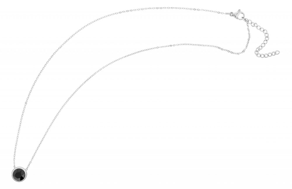 Akzent® Colar Prateado com Cristal Swarovski Preto em Aço Inoxidável