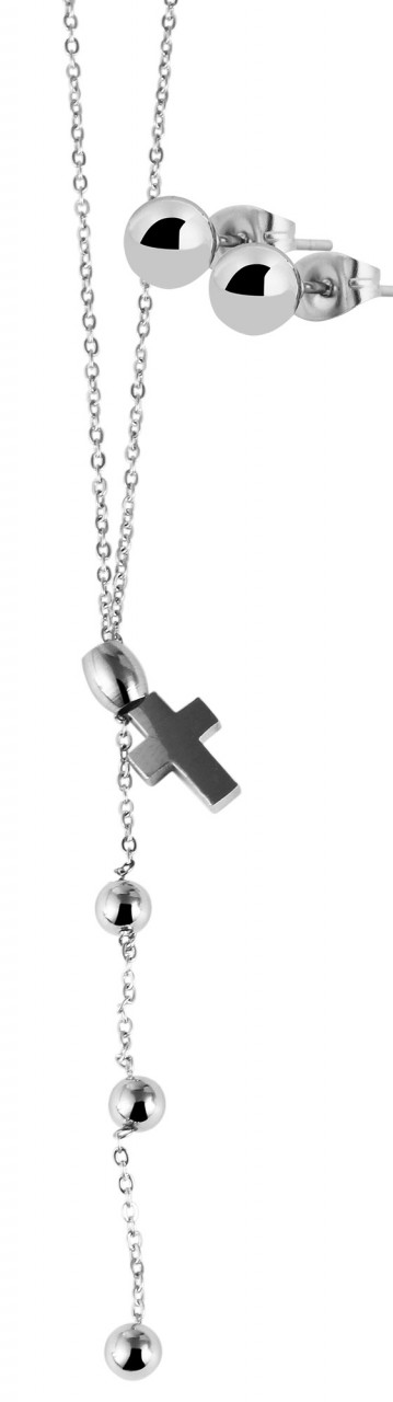 O conjunto de joias da marca Praktik é feito de aço inoxidável e é composto por brincos e uma corrente. A corrente da âncora tem 45 cm de comprimento, 1 mm de largura e 1 mm de espessura. Além disso, uma corrente extensora de 5 cm de comprimento é fixada na ponta da corrente, o que permite variar o comprimento em até 5 cm e, portanto, pode ser adaptado a qualquer roupa. A corrente pode ser aberta e fechada com um mosquetão resistente de aço inoxidável. O pingente de corrente de âncora consiste em uma corrente decorada com bolas de aço inoxidável altamente polidas em intervalos regulares. Uma pequena cruz está presa ao final desta corrente de 5,7 cm de comprimento. Também é altamente polido e feito de aço inoxidável. As dimensões do pingente são 4 mm de largura e 4 mm de espessura.