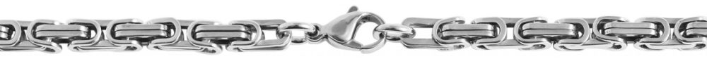 A corrente bizantina prateada da marca Akzent é feita de aço inoxidável. Está disponível nos comprimentos de 45 cm, 50 cm, 55 cm, 60 cm, 70 cm e 80 cm e tem espessura de 6 mm. O colar moderno pode ser aberto e fechado com um mosquetão prateado, que também é feito de aço inoxidável. As correntes e pulseiras bizantinas são conhecidas por seu design maciço e masculino. Destacam-se pelos inúmeros elementos que se interligam de forma especial e completam qualquer look forte. O colar pode ser combinado particularmente bem com a pulseira correspondente. Também é ideal como presente, por exemplo, para um aniversário, Dia dos Pais ou Natal.