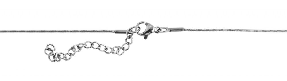 A corrente de aço inoxidável prateado da marca Praktik é feita em padrão cobra e está disponível em diversos comprimentos. A espessura da corrente é de 3 mm. Na corrente da cobra, os elementos individuais da corrente foram alinhados verticalmente um ao lado do outro. Esta composição garante um visual especial e confere ao colar uma flexibilidade especial. O colar pode ser aberto e fechado com um mosquetão prateado, também feito de aço inoxidável. Além disso, há uma corrente extensora de 5 cm de comprimento presa na ponta da corrente, que permite variar o comprimento em até 5 cm e adaptar a corrente cobra a qualquer look.
