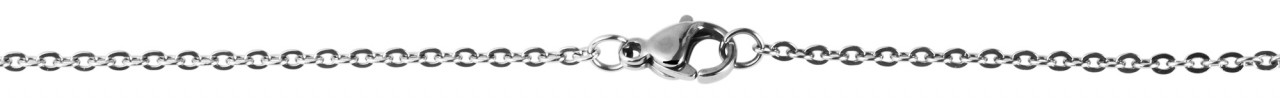 O colar simples da marca Akzent é feito de aço inoxidável prateado com padrão de âncora redondo. Pode ser aberto e fechado com um mosquetão prateado, também feito de aço inoxidável. As correntes estão disponíveis nos comprimentos 42, 45, 50, 55, 60, 70 e 80 cm, têm largura de 2 mm e espessura de 1 mm. Além disso, uma corrente extensora de 5 cm de comprimento é fixada na ponta da corrente, o que permite variar o comprimento em até 5 cm e, portanto, pode ser adaptado a qualquer roupa. A corrente pode ser decorada com uma variedade de pingentes conforme desejado.