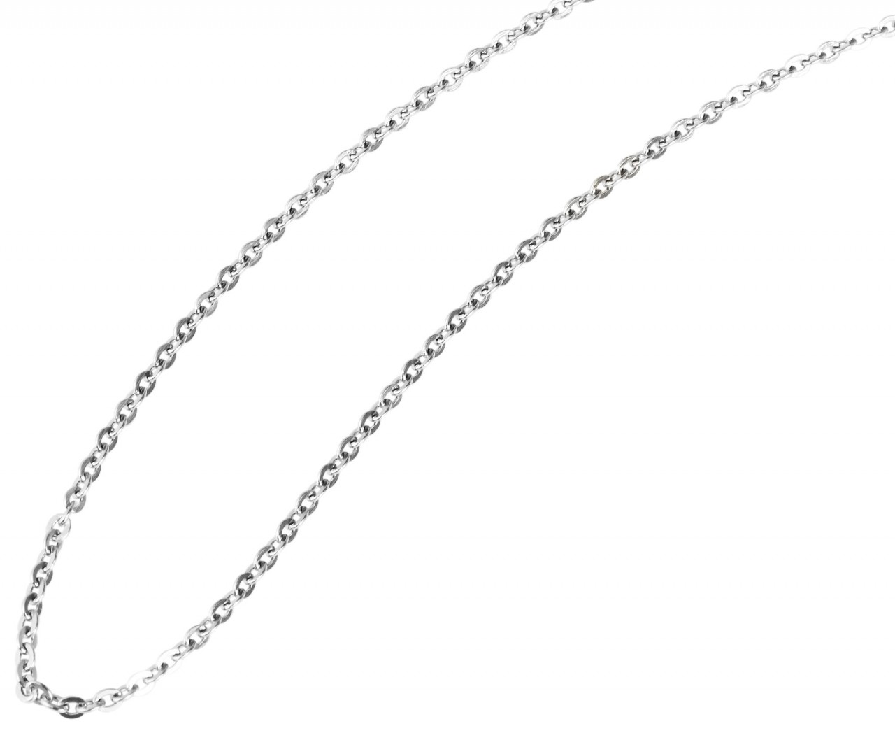 O colar simples da marca Akzent é feito de aço inoxidável prateado com padrão de âncora redondo. Pode ser aberto e fechado com um mosquetão prateado, também feito de aço inoxidável. As correntes estão disponíveis nos comprimentos 42, 45, 50, 55, 60, 70 e 80 cm, têm largura de 2 mm e espessura de 1 mm. Além disso, uma corrente extensora de 5 cm de comprimento é fixada na ponta da corrente, o que permite variar o comprimento em até 5 cm e, portanto, pode ser adaptado a qualquer roupa. A corrente pode ser decorada com uma variedade de pingentes conforme desejado.