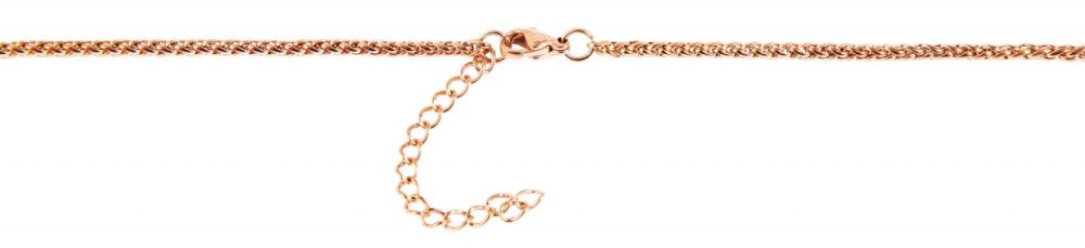 A corrente de aço inoxidável em ouro rosa da marca Akzent é revestida com IPR e fabricada num padrão de trança. Está disponível em diferentes comprimentos e tem uma espessura de corrente de 2,5 mm. Os elementos individuais da corrente entrançada estão ligados entre si de uma forma especial, criando um aspeto único sob a forma de uma trança entrançada. O padrão elegante da corrente confere à peça de joalharia um aspeto muito especial, pelo que pode ser usada em qualquer ocasião. O colar pode ser aberto e fechado com um fecho de lagosta cor de ouro rosa, que também é feito de aço inoxidável. Na extremidade da corrente, encontra-se também uma corrente de extensão de 5 cm, que permite variar o comprimento até 5 cm e adaptar a corrente de tranças a qualquer roupa.