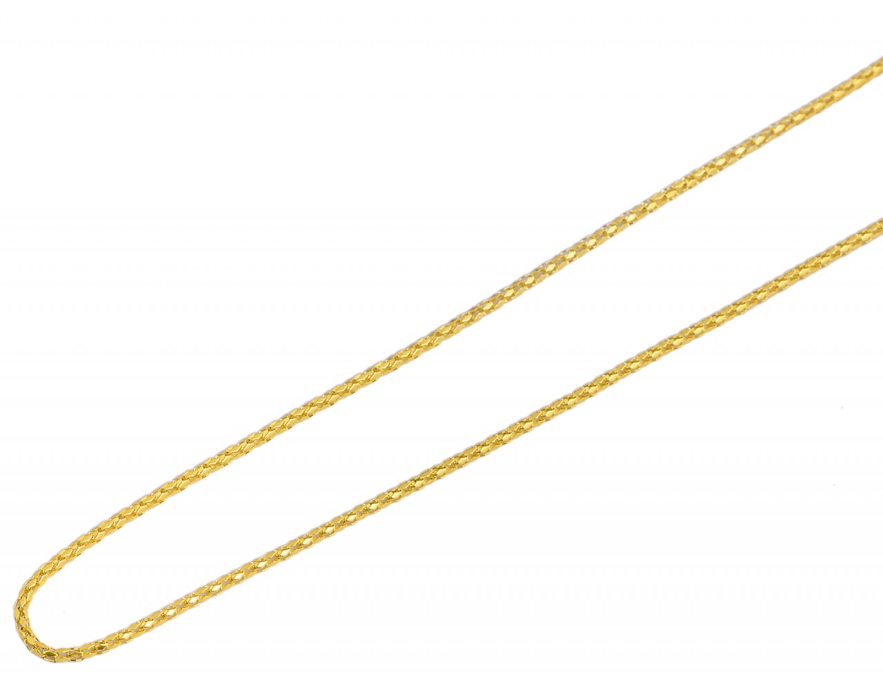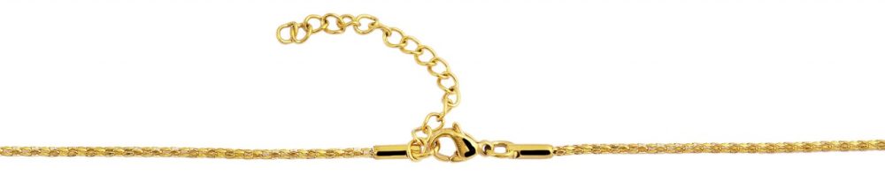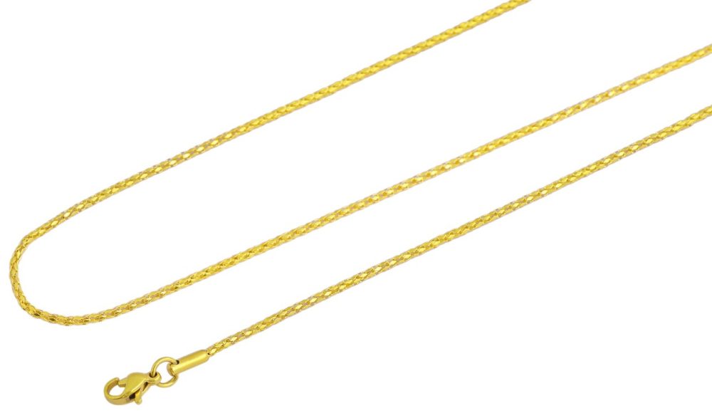 A corrente coreana da marca Akzent é feita de aço inoxidável e dourada. Além disso, a joia é fornecida com revestimento iônico. Esse revestimento altera a aparência do material e promete longa durabilidade do colar. Devido à disposição especial dos elos da corrente, a corrente é confortável de usar e também pode ser combinada com pingentes. A corrente é presa na nuca por um fecho lagosta de aço inoxidável dourado. Pode ser estendida até 5 cm usando a corrente de extensão integrada se necessário, para que possa ser adaptada a qualquer roupa. A espessura da corrente é de 3 mm.