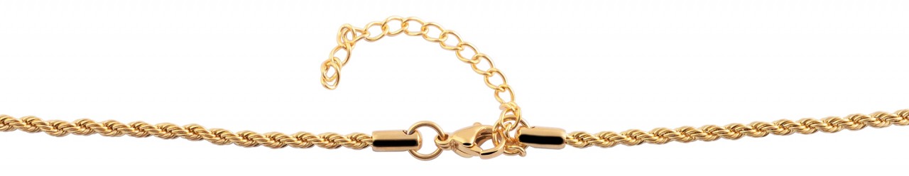 A corrente de aço inoxidável dourado da marca Praktik é feita em padrão de cordão e está disponível em diversos comprimentos. A espessura da corrente é de 3 mm. Na corrente de cordão, dois fios de corrente individuais são torcidos juntos, criando um padrão especial. O elegante padrão de corrente confere à joia um visual muito especial, podendo ser usada em qualquer ocasião. O colar pode ser aberto e fechado com um mosquetão dourado, também feito de aço inoxidável. Além disso, há uma corrente extensora de 5 cm de comprimento presa na ponta da corrente, que permite variar o comprimento em até 5 cm e adaptar a corrente com cordão a qualquer look.