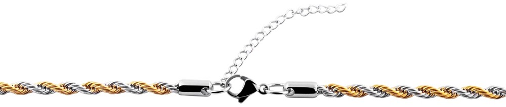 A corrente de aço inoxidável da marca Praktik é feita em padrão de cordão e está disponível em diversos comprimentos. A espessura da corrente é de 3 mm. Na corrente de cordão, dois fios de corrente individuais são torcidos juntos, criando um padrão especial. O elegante padrão de corrente confere à joia um visual muito especial, podendo ser usada em qualquer ocasião. O colar pode ser aberto e fechado com um mosquetão prateado, também feito de aço inoxidável. Além disso, há uma corrente extensora de 5 cm de comprimento presa na ponta da corrente, que permite variar o comprimento em até 5 cm e adaptar a corrente com cordão a qualquer look. Com esta joia você ganha um colar elegante e com valor de reconhecimento.