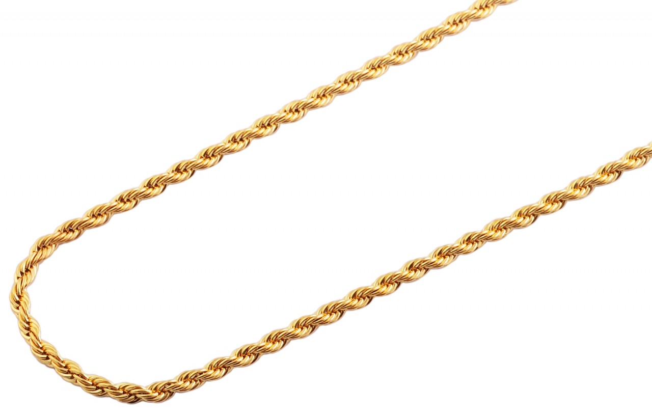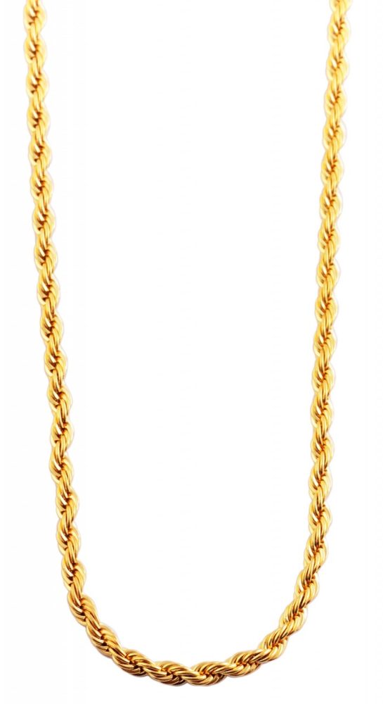 A corrente de aço inoxidável dourado da marca Praktik é feita em padrão de cordão e está disponível em diversos comprimentos. A espessura da corrente é de 3 mm. Na corrente de cordão, dois fios de corrente individuais são torcidos juntos, criando um padrão especial. O elegante padrão de corrente confere à joia um visual muito especial, podendo ser usada em qualquer ocasião. O colar pode ser aberto e fechado com um mosquetão dourado, também feito de aço inoxidável. Além disso, há uma corrente extensora de 5 cm de comprimento presa na ponta da corrente, que permite variar o comprimento em até 5 cm e adaptar a corrente com cordão a qualquer look. Com esta joia você ganha um colar elegante e com valor de reconhecimento.