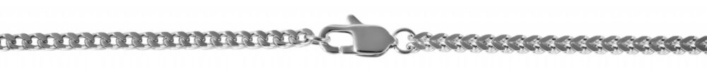 A corrente de aço inoxidável da marca Akzent é confecionada no padrão de corrente quadrada franco. A disposição dos elementos, como uma corrente de 3 mm de espessura, confere ao colar um aspeto masculino e magnífico. Este colar consiste em uma série de elementos em forma de V firmemente conectados que garantem um alto nível de conforto e tornam o visual tão sólido. O colar pode ser aberto e fechado com um mosquetão, também feito de aço inoxidável. Além disso, um elemento quadrado de aço inoxidável de 30 x 3 mm é incorporado na lateral da corrente, que pode ser equipado com pequenas gravuras.
