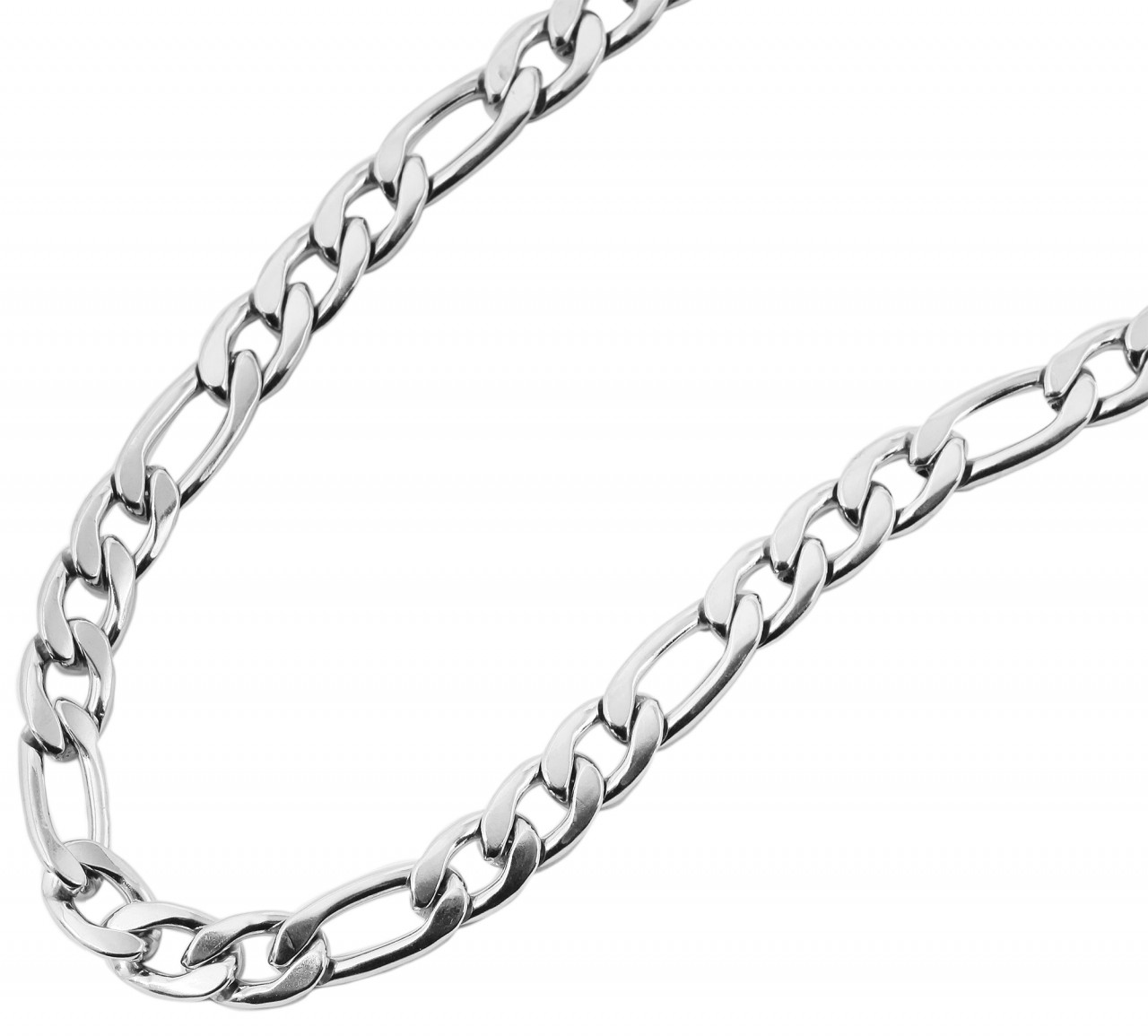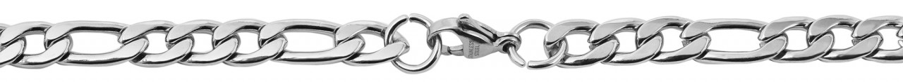 O colar prateado da marca Akzent é feito de aço inoxidável no padrão Figaro. Semelhante à corrente do meio-fio, os elementos planos garantem um ajuste confortável. A corrente está disponível em diversos comprimentos, tem largura de 6 mm e espessura de 2 mm. A corrente de joalheria simples pode ser aberta e fechada com um mosquetão prateado, que também é feito de aço inoxidável. Graças ao material robusto e ao acabamento de alta qualidade, o colar promete uma longa vida útil.