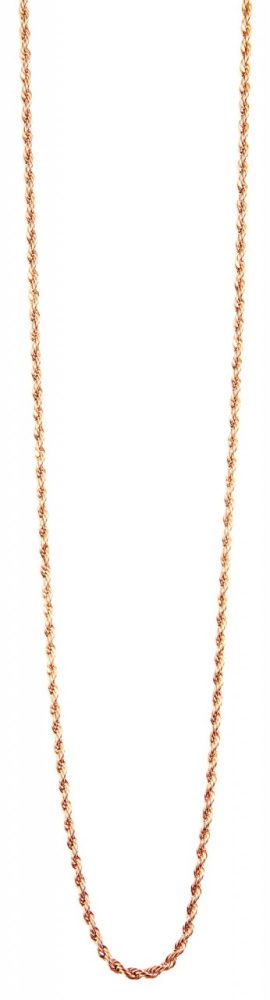 A corrente de aço inoxidável ouro rosa da marca Praktik é feita em padrão de cordão e está disponível em diversos comprimentos. A espessura da corrente é de 2 mm. Na corrente de cordão, dois fios de corrente individuais são torcidos juntos, criando um padrão especial. O elegante padrão de corrente confere à joia um visual muito especial, podendo ser usada em qualquer ocasião. O colar pode ser aberto e fechado com um mosquetão dourado rosa, também feito de aço inoxidável. Além disso, há uma corrente extensora de 5 cm de comprimento presa na ponta da corrente, que permite variar o comprimento em até 5 cm e adaptar a corrente com cordão a qualquer look. Com esta joia você ganha um colar elegante e com valor de reconhecimento.