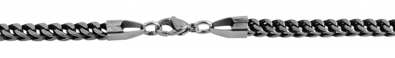 O colar da marca Praktik é feito de aço inoxidável com padrão blindado. O material robusto e sólido promete uma longa vida útil. A corrente pode ser fixada ao pescoço com a ajuda de um fecho lagosta de aço inoxidável. A disposição dos elementos da corrente confere à corrente um visual masculino e robusto. A joia está disponível em diversos comprimentos. A largura da corrente é de 4 mm e a espessura é de 4 mm.