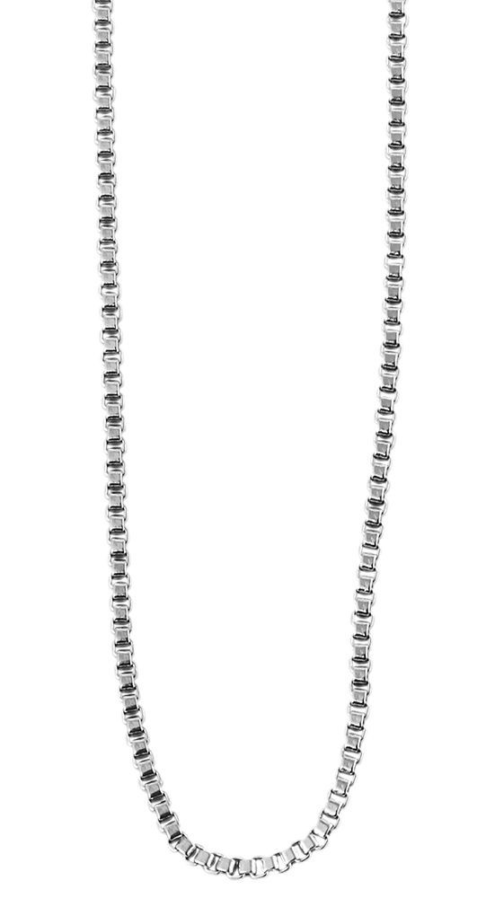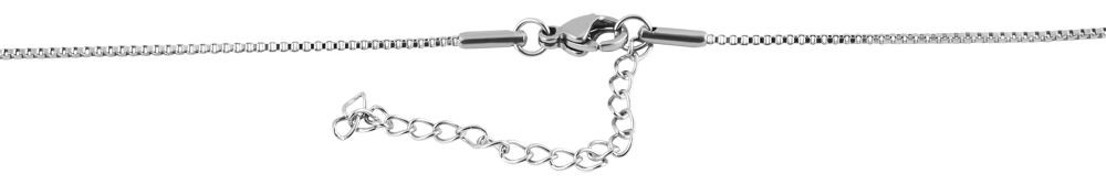 O colar Venezia da marca Akzent é feito de aço inoxidável e tem cor prateada. O material garante uma longa vida útil do colar. Os elos da corrente retangulares e justos são uma característica atraente do padrão da corrente Venezia e garantem uma aparência moderna e elegante. A corrente é presa na nuca por um fecho lagosta de aço inoxidável. A corrente está disponível em diferentes comprimentos e pode ser estendida em 5 cm se necessário. A espessura da corrente é de 1 mm.