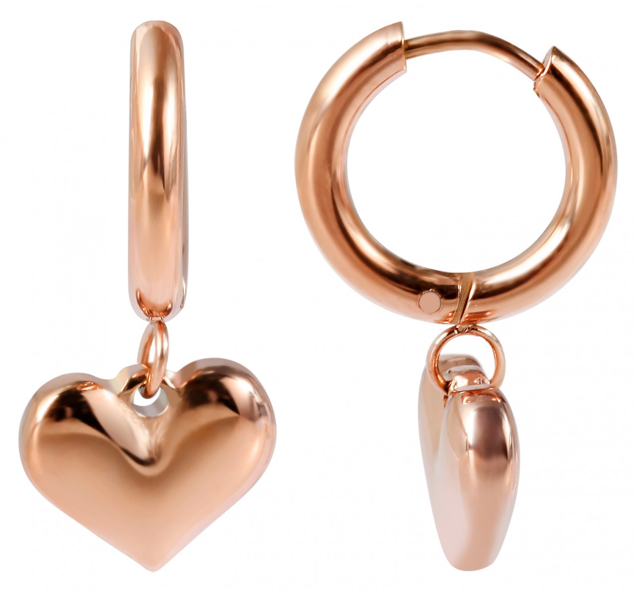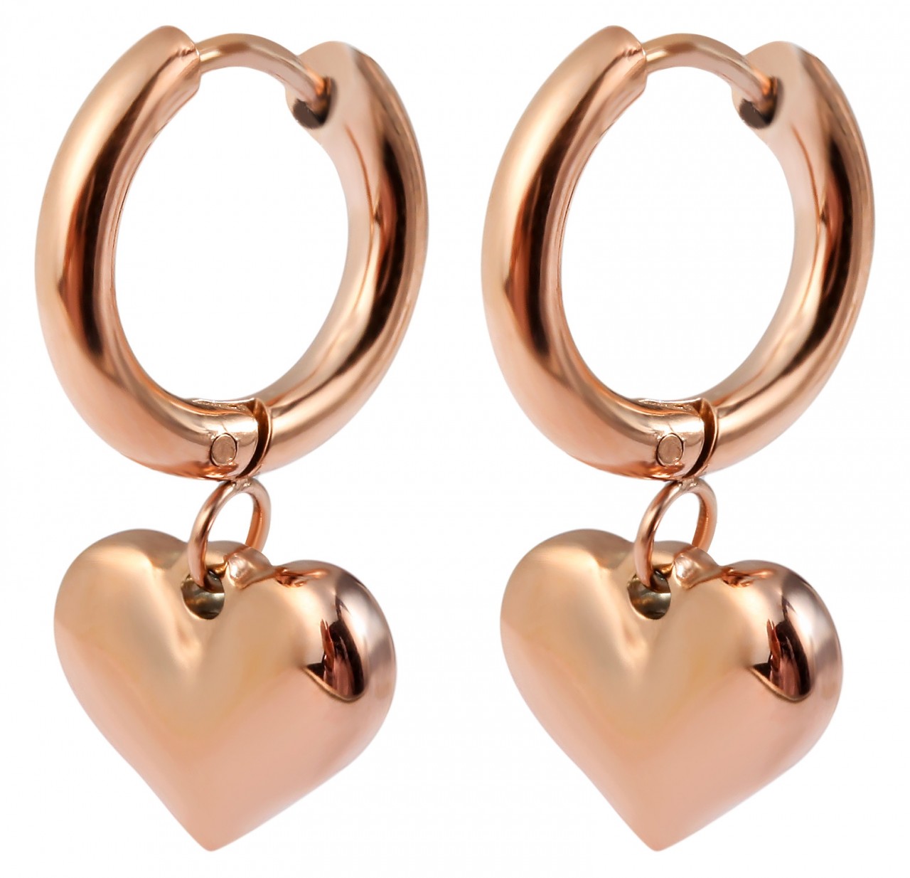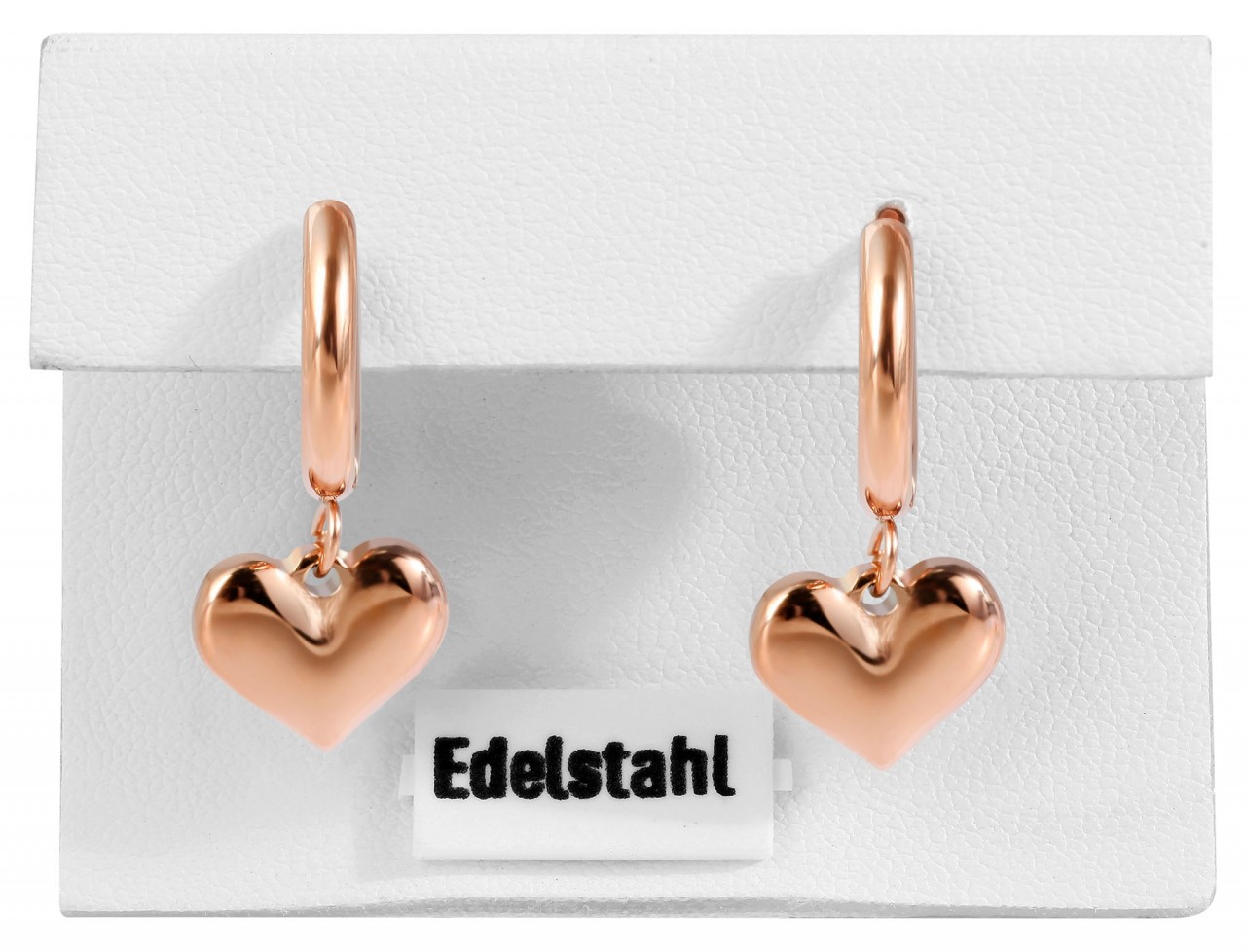 Os brincos de argola da marca Accent são feitos de aço inoxidável com desenho de coração e estão disponíveis em diversas cores. Possuem diâmetro de 10 mm e largura e espessura de material de 2,5 mm. O fecho é um prático fecho dobrável que garante uma fixação segura no orifício da orelha e garante fácil colocação e retirada. Um pingente de coração está preso a um ilhó nos brincos de argola. Isso balança elegantemente com cada movimento e dá a cada roupa um charme moderno. Os pingentes em formato de coração também são feitos de aço inoxidável e combinam com a cor dos brincos de argola. Têm comprimento de 10 mm, largura de 12 mm e espessura de material de 3 mm. Os brincos de coração não devem faltar em nenhuma caixa de joias e são absolutamente indispensáveis.