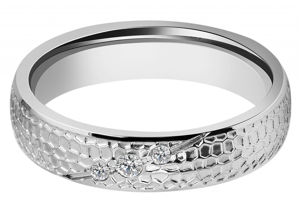 O anel de aço inoxidável prateado da marca Akzent é um anel de parceiro feminino que está disponível nos tamanhos 52-62. Tem largura de 5 mm e espessura de material de 2 mm. O visual tem acabamento superficial fosco e estruturado, o que confere ao anel um visual único. Além disso, três pedras simili estão dispostas diagonalmente no anel feminino e podem ser desenhadas por dentro com gravuras pessoais. Com este produto você recebe um anel de parceiro especial que é um símbolo de coesão eterna.