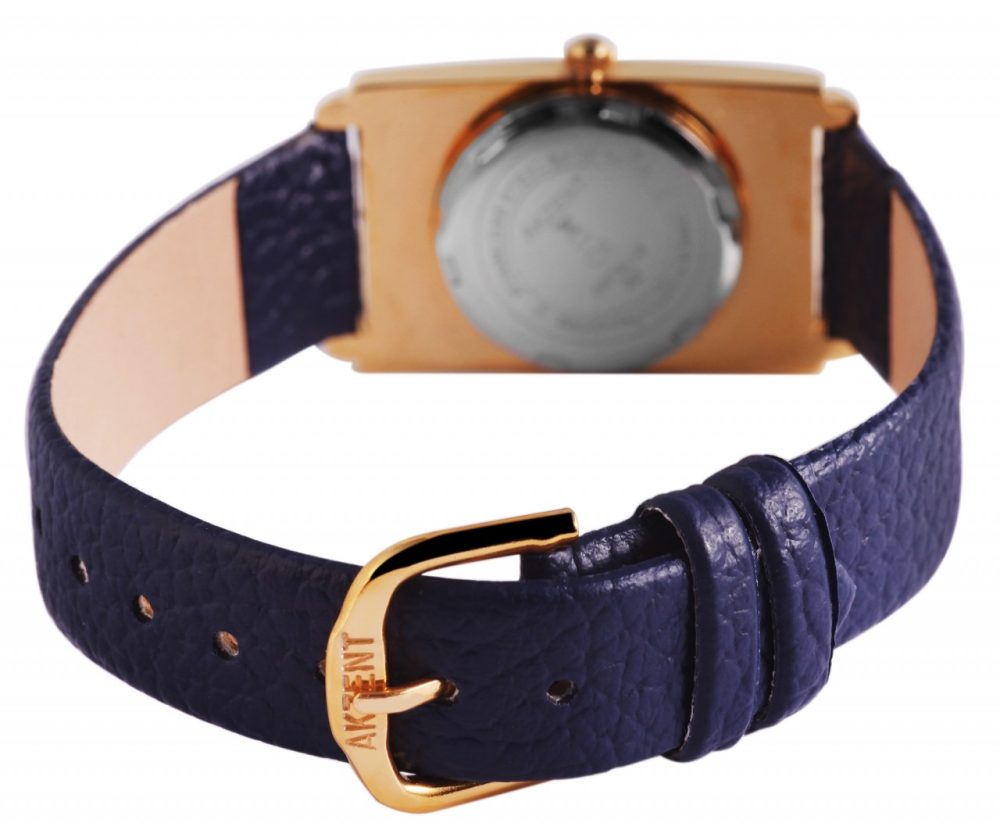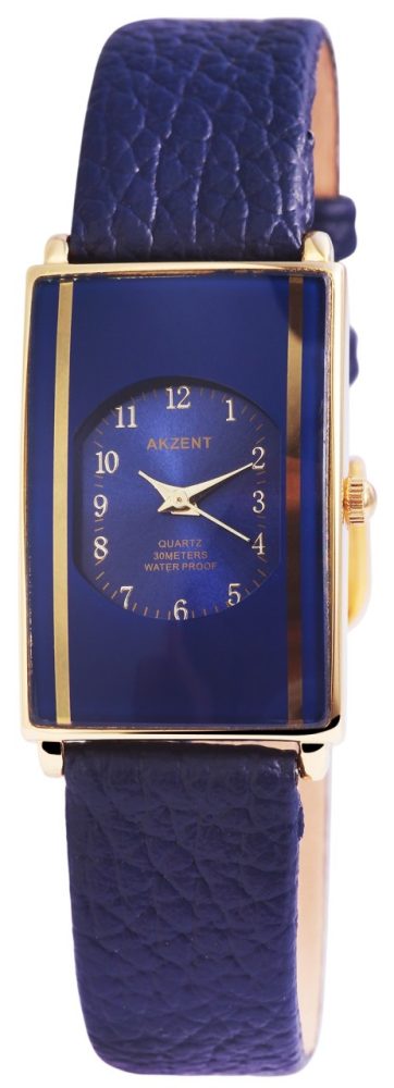 O relógio analógico Akzent para senhora possui um movimento de quartzo de alta qualidade. A bracelete em imitação de pele tem 16 mm de largura e abre-se com uma fivela de pino. O comprimento total é de 22 cm. A caixa metálica com vidro mineral mede 23 x 33 mm e tem 8 mm de altura. A tampa da caixa é feita de aço inoxidável. O relógio é testado a uma pressão de 3 ATM.