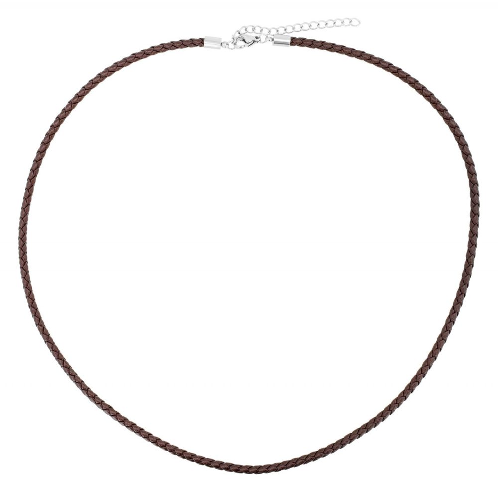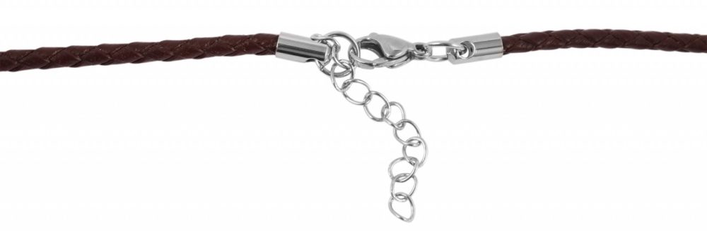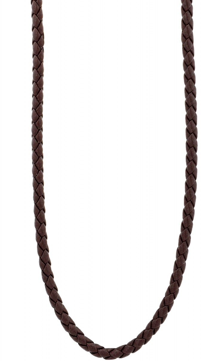 O colar castanho da marca Akzent é feito de uma tira de couro genuíno entrançado. Esta tem uma espessura de 3 mm. Pode ser aberto e fechado com um fecho de lagosta prateado feito de aço inoxidável. A corrente de couro genuíno está disponível em comprimentos de 45 cm, 50 cm e 55 cm. Uma corrente de extensão de 5 cm está igualmente ligada a uma das extremidades da corrente. Assim, é possível variar o comprimento até 5 cm e adaptar a peça de joalharia a qualquer roupa. Um colar simples que também pode ser usado com um pendente.