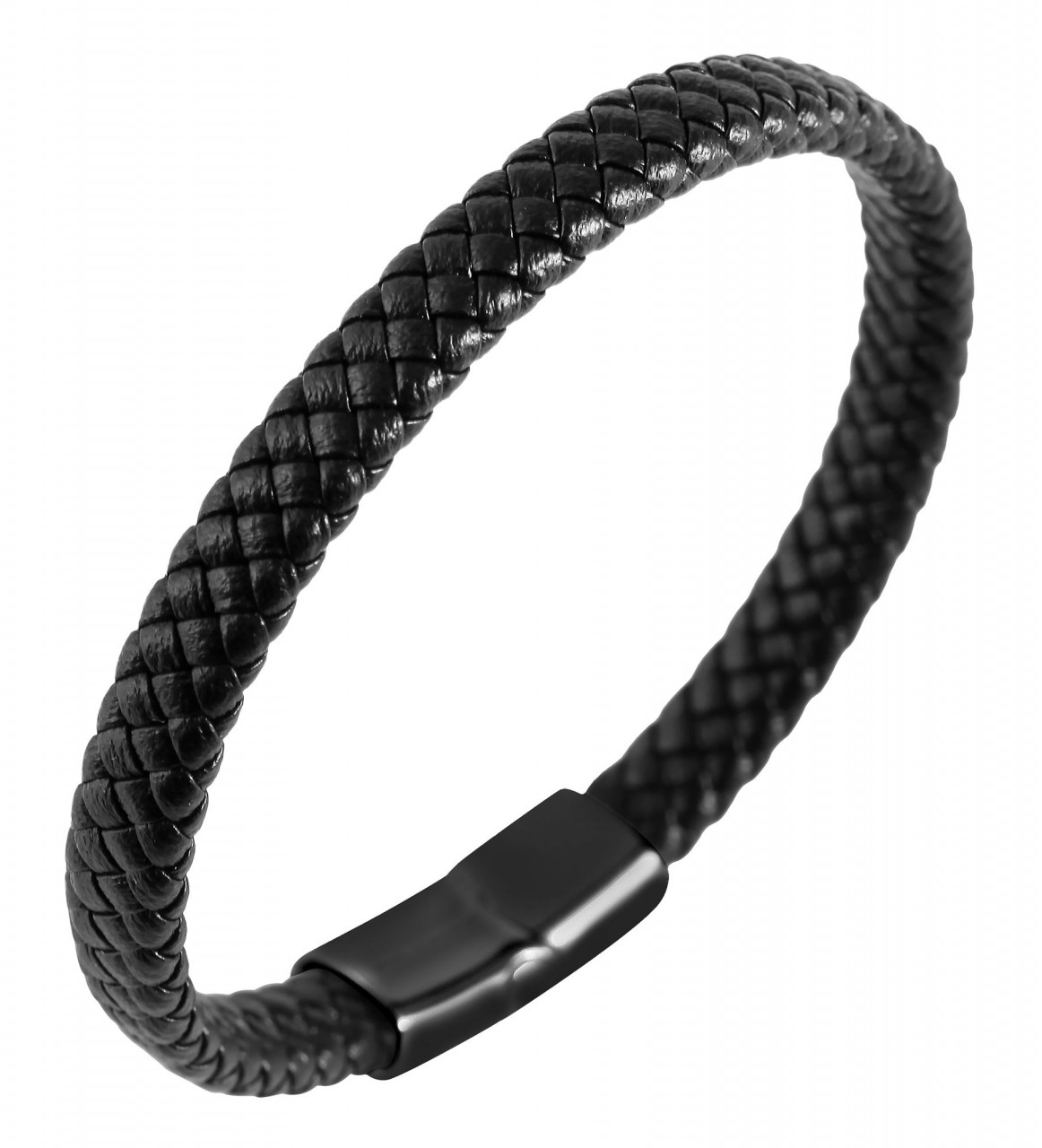 - Esta pulseira de couro genuíno da marca Akzent consiste em uma tira de couro trançado de 8 mm de largura que abre e fecha com um prático fecho magnético de aço inoxidável.