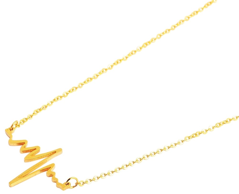 O colar da marca Akzent é feito de aço inoxidável num padrão de âncora. Um pendente com a forma de um batimento cardíaco está ligado à corrente, fazendo com que cada coração bata mais depressa. A corrente de joalharia moderna pode ser aberta e fechada com um fecho de lagosta, também feito de aço inoxidável. Uma corrente de extensão de 5 cm está também ligada a uma extremidade da corrente, permitindo-lhe variar o comprimento até 5 cm e adaptá-la a qualquer roupa. As dimensões resultam de um comprimento de 43 cm e de uma espessura de 1 mm. O pendente tem um comprimento de 32 mm, uma largura de 22 mm e uma espessura de 2 mm.