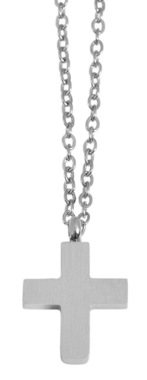 A corrente de âncora com pingente em forma de cruz da marca Praktik é feita de aço inoxidável. O colar e o pingente de aço inoxidável são prateados. As dimensões da corrente são: comprimento 43 + 5 cm e espessura 1 mm. As dimensões do pingente são: comprimento 12 mm, largura 10 mm e espessura 1,5 mm.