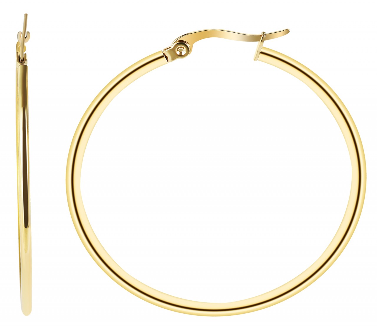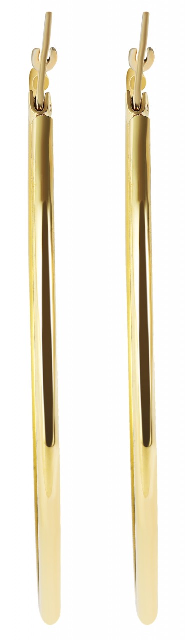Os brincos de argola redondos da marca Praktik são feitos de aço inoxidável e têm cor dourada. O material é à prova de ferrugem e garante uma longa vida útil. Os brincos impressionam pelo design minimalista, as curvas e o aspecto brilhante da superfície fazem com que estes brincos atraiam muita atenção. Os brincos de argola são um must-have absoluto da mulher moderna. Os brincos podem ser presos ao orifício da orelha com um fecho dobrável simples. A caneta é inserida através de um ilhó redondo e fechada. Isso torna impossível abrir os brincos de argola de forma independente. Os brincos de argola estão disponíveis em diversos tamanhos.