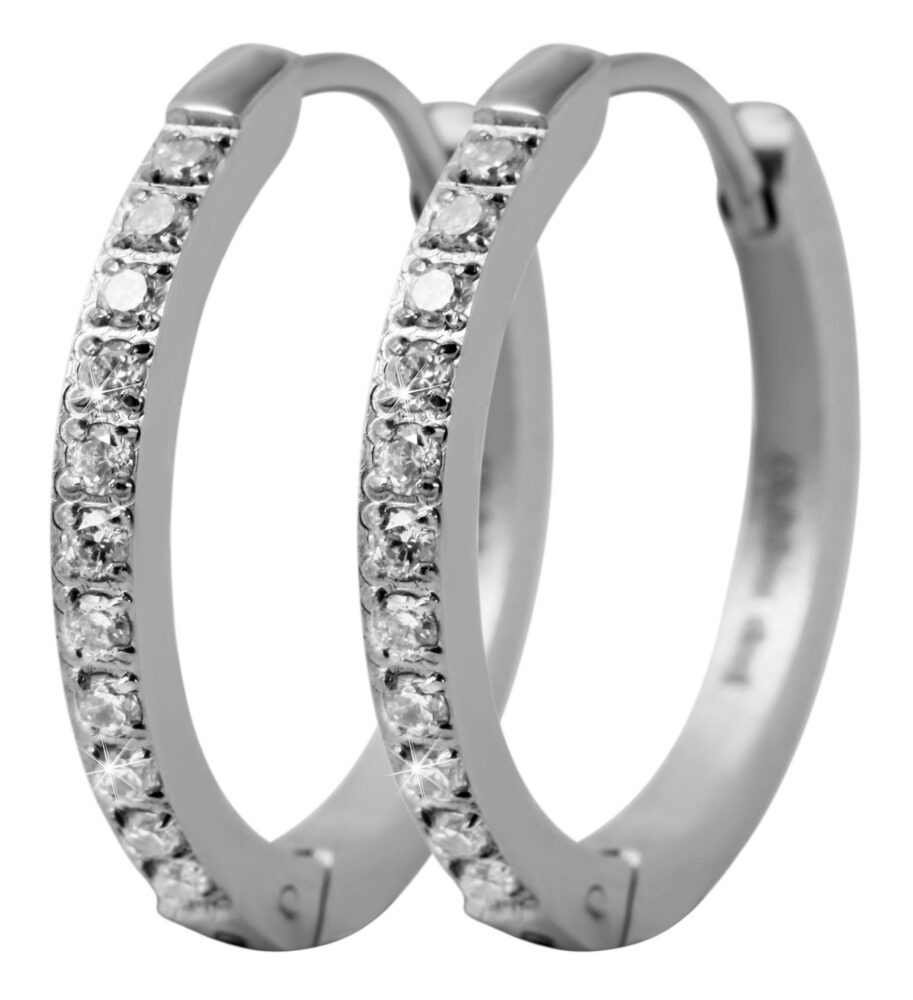 - As argolas prateados podem ser fechados e abertos com strass e um fecho.