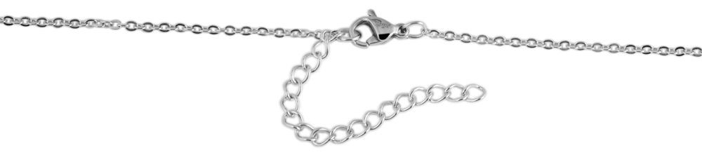 O colar de âncora da Akzent é feito de aço inoxidável. O material garante uma longa vida útil ao colar. A corrente é prateada. A corrente é presa na parte de trás do pescoço com um fecho de pressão de aço inoxidável. O comprimento da corrente é de 43 cm. Se necessário, ele pode ser estendido em 5 cm para que possa ser ajustado individualmente. A espessura da corrente é de 1 mm. O colar também possui um pingente de aço inoxidável. O tamanho do pingente é 19 mm de largura e 28 mm de altura. O destaque óptico fica por conta dos cristais de zircônia. O pingente do colar é prateado.