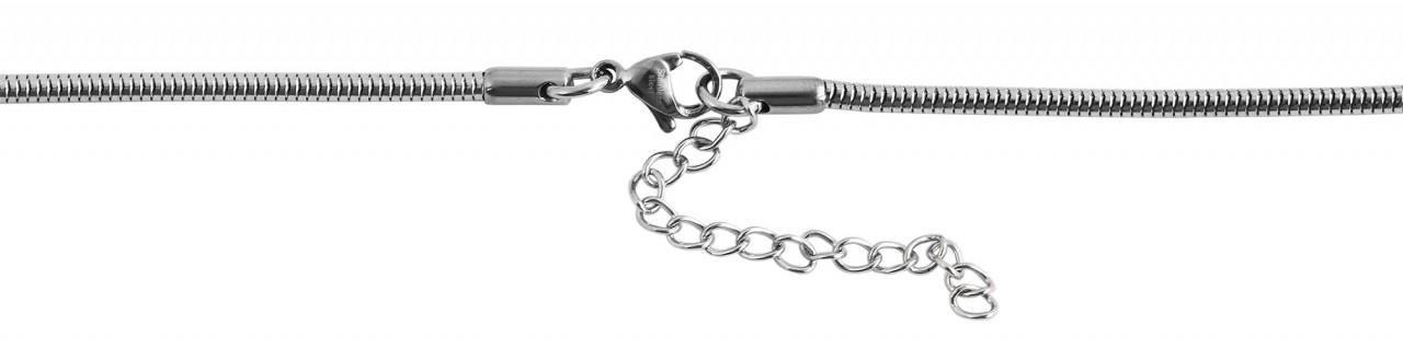O colar de cobra da marca Praktik é feito de aço inoxidável e na cor prata. O material garante uma longa vida útil. Os elementos da corrente da cobra têm todos o mesmo formato e se fundem suavemente uns nos outros, de modo que à primeira vista você dificilmente consegue ver um padrão de corrente. Não só a aparência, mas também a mobilidade da corrente lembram uma cobra. As correntes de cobra são confortáveis de usar e também podem ser usadas de maneira excelente em pingentes. A corrente é presa na nuca por um fecho lagosta de aço inoxidável. A corrente está disponível em diferentes comprimentos e pode ser estendida em 5 cm se necessário para que possa ser ajustada individualmente. A espessura é de 2 mm.