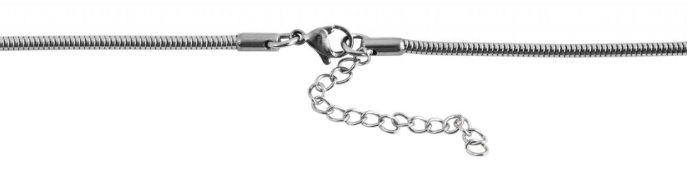 O colar de cobra da marca Praktik é feito de aço inoxidável e na cor prata. O material garante uma longa vida útil. Os elementos da corrente da cobra têm todos o mesmo formato e se fundem suavemente uns nos outros, de modo que à primeira vista você dificilmente consegue ver um padrão de corrente. Não só a aparência, mas também a mobilidade da corrente lembram uma cobra. As correntes de cobra são confortáveis de usar e também podem ser usadas de maneira excelente em pingentes. A corrente é presa na nuca por um fecho lagosta de aço inoxidável. A corrente está disponível em diferentes comprimentos e pode ser estendida em 5 cm se necessário para que possa ser ajustada individualmente. A espessura é de 2 mm.