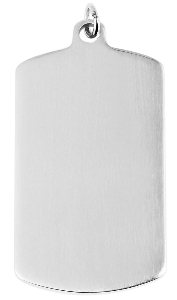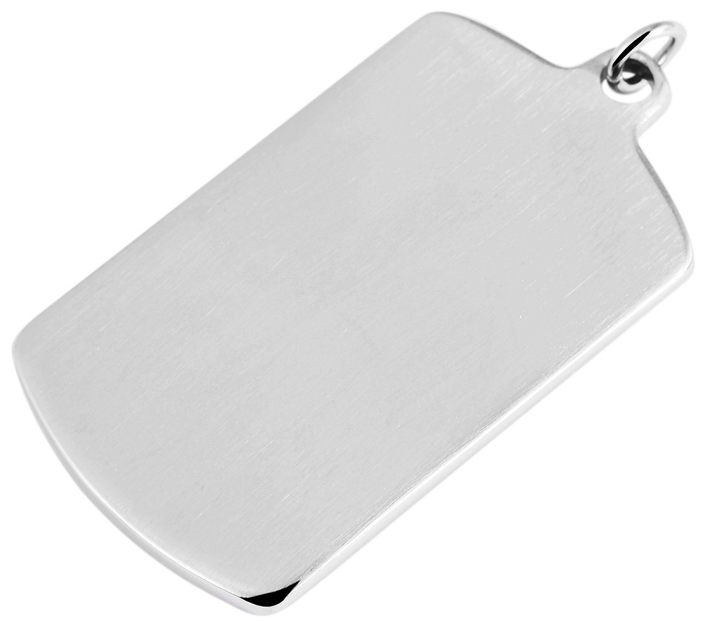 O pingente de gravação, para todos os tipos de gravuras, da marca Akzent é feito de aço inoxidável. A cor do pingente é prateado. As dimensões são: 49 mm de comprimento, 29 mm de largura e 2,5 mm de espessura.