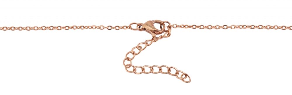 O colar feminino da marca Praktik tem padrão âncora e é feito de aço inoxidável. As dimensões da corrente são comprimento de 43 cm, largura de 1 mm e espessura de 1 mm. A corrente também possui um pingente. O pingente tem 13 mm de comprimento, 10 mm de largura e 2 mm de espessura. A corrente pode ser aberta e fechada com fecho lagosta, também feito de aço inoxidável.