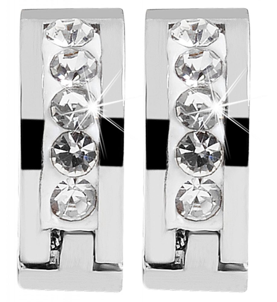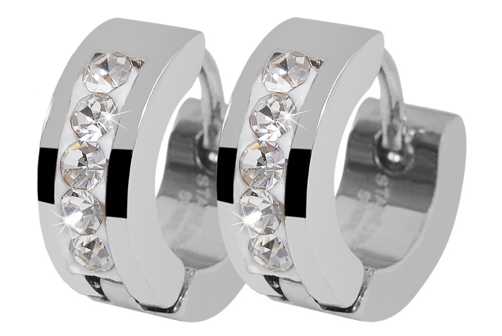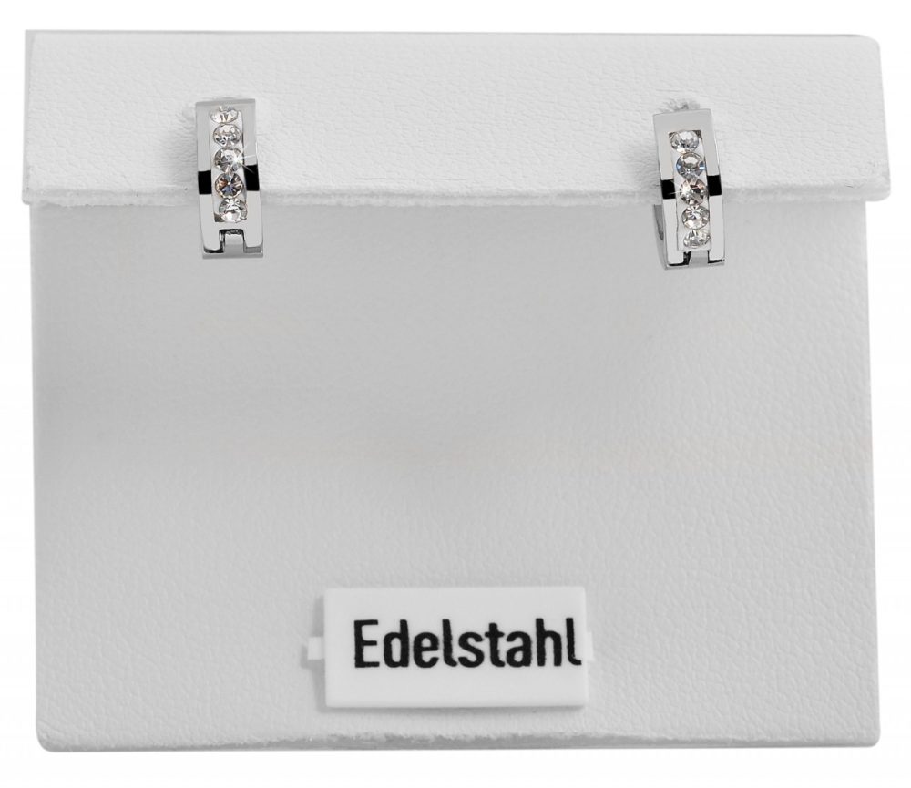 Os brincos de argola da marca Akzent são feitos de aço inoxidável e podem ser abertos e fechados com um fecho articulado de aço inoxidável. As dimensões do crioulo dobrável são diâmetro de 7 mm, largura de 4 mm e espessura do material de 2 mm. Um destaque especial nos brincos de argola são as 5 pedras simili incorporadas na frente. Isso torna a joia da moda um atrativo especial.