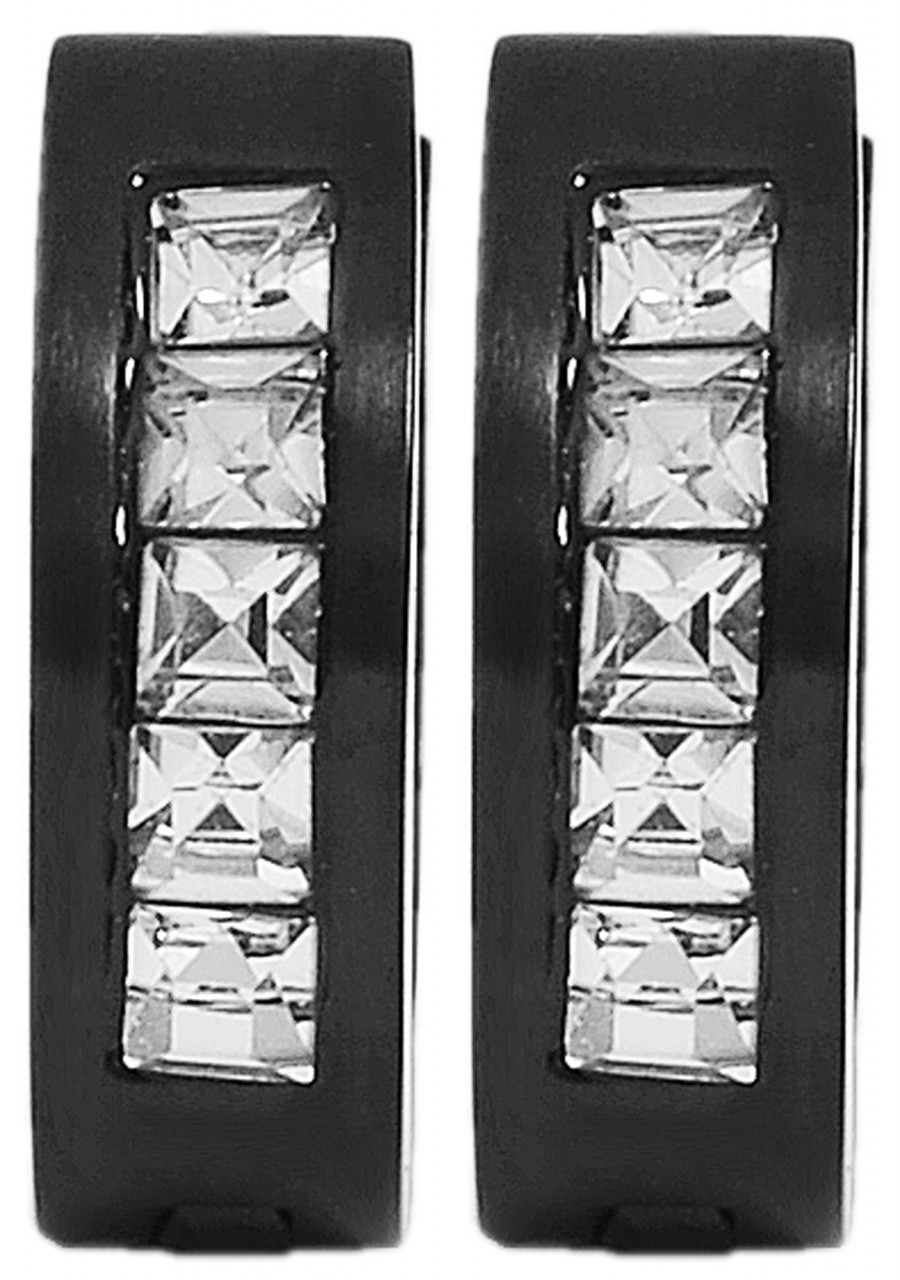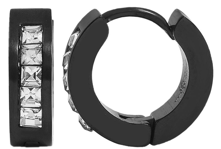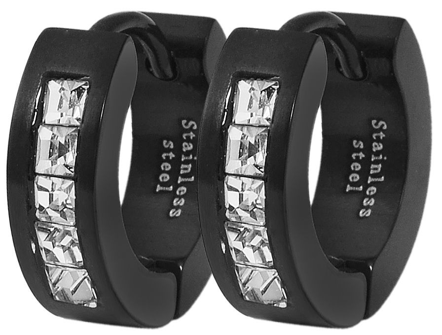 Os brincos de argola Akzent são feitos de aço inoxidável e são cravejados com 5 pedras brilhantes semelhantes. O fecho é de dobradiça e é feito de aço inoxidável. Os brincos de argola medem 9 mm de diâmetro, 4 mm de largura e 3 mm de espessura.