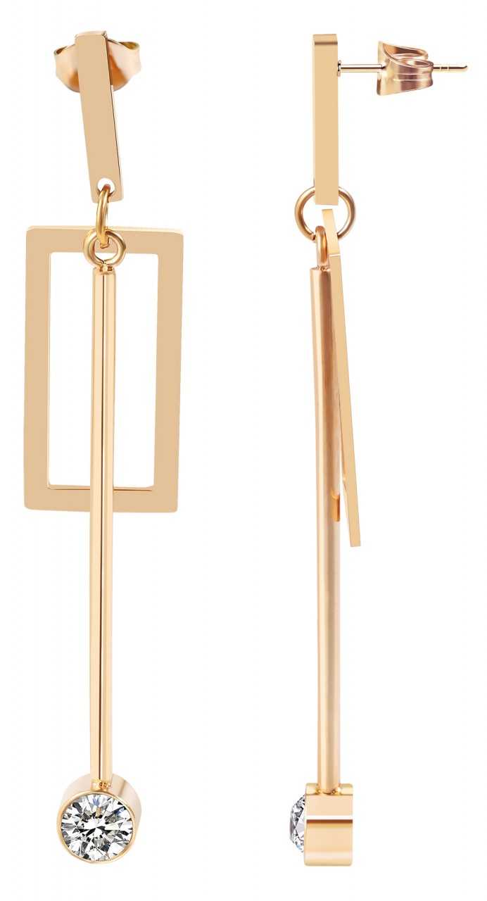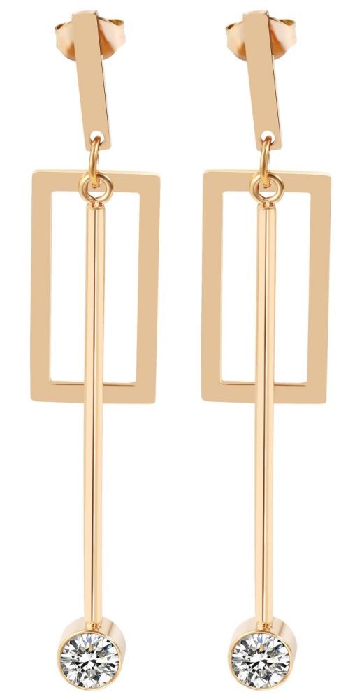 Akzent® Brincos com Pedra Swarovski Dourados Retângulo em Aço Inoxidável