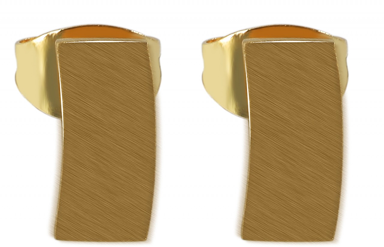 Brincos de realce em aço inoxidável. O fecho é de pressão. O acabamento é em aço inoxidável mate e brilhante. O artigo tem as seguintes dimensões: Largura 4 mm, altura 0,9 cm.