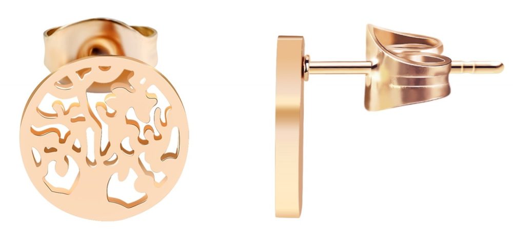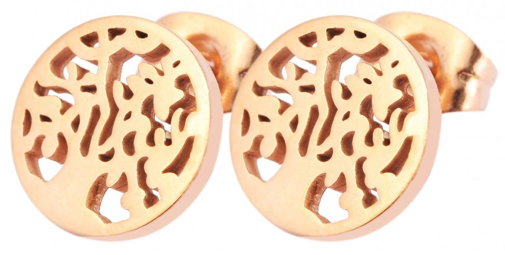 Os brincos da marca Praktik em forma de árvore da vida são feitos de aço inoxidável. As dimensões são: Diâmetro: 1,0 cm / Espessura: 0,1 cm