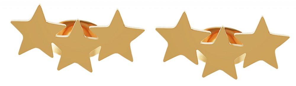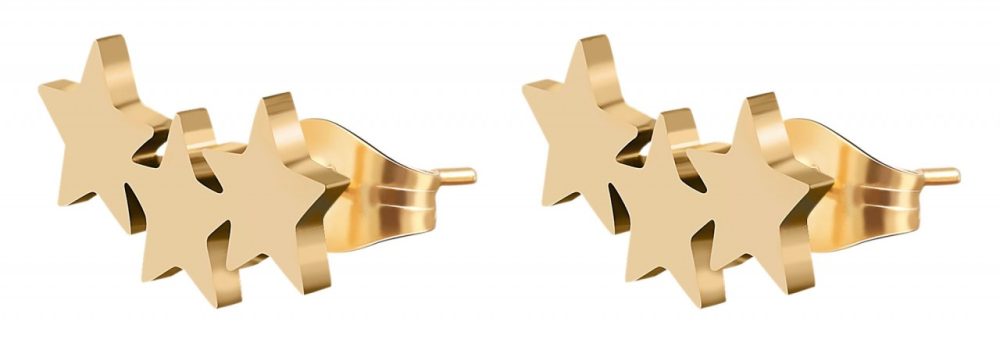 Os brincos da marca Praktik são feitos de aço inoxidável e estão disponíveis em diversas cores. O material revela-se particularmente robusto, durável e amigo da pele. O desenho dos brincos é composto por três estrelas amarradas entre si, que possuem acabamento brilhante. Têm comprimento de 19 mm, largura de 6 mm e espessura de 1 mm. Os brincos podem ser presos ao orifício da orelha com um parafuso borboleta. A porca de conforto incluída com placa de silicone fornece suporte adicional. Entregues em cartão-joia de 45 x 35 mm, os brincos são ideais para apresentar no expositor designado ou para presentear uma pessoa especial.