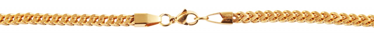 O colar de meio-fio de duas fileiras da marca Praktik é feito de aço inoxidável. O material robusto e sólido garante uma longa vida útil. A corrente pode ser fixada na parte de trás do pescoço com um fecho lagosta de aço inoxidável. A disposição dos elementos da corrente confere à corrente um visual masculino e robusto. A joia está disponível em diversos comprimentos e a espessura da corrente do meio-fio é de 4 mm.