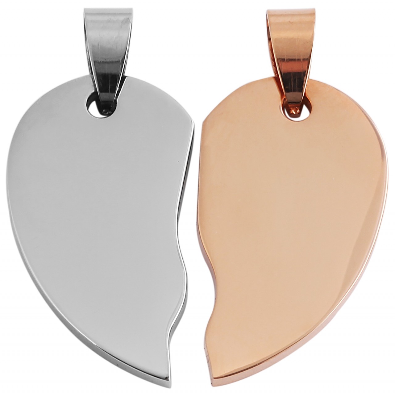 Os pingentes do conjunto da marca Praktik são feitos de aço inoxidável e alguns têm acabamento em banho iônico de alta qualidade. O material é particularmente robusto, durável e amigo da pele, tornando o aço inoxidável ideal para quem sofre de alergias. Os pingentes de corrente em forma de coração são o acessório perfeito para sinalizar sua amizade ou amor e dar-lhes um toque pessoal com gravuras individuais. Ilhós ovais são usados para prender correntes para que os pingentes possam ser presos a vários colares. Os pingentes de coração têm 30 mm de comprimento, 17 mm de largura e 2 mm de espessura. Estes pingentes personalizados são perfeitos para ele e para ela e são ideais para fazer felizes os seus entes queridos.