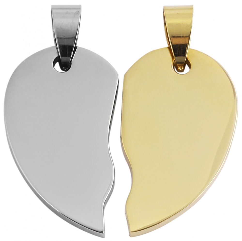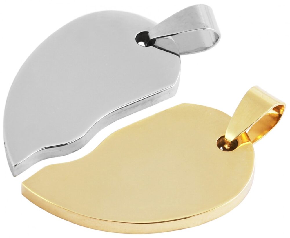 Os pingentes do conjunto da marca Praktik são feitos de aço inoxidável e alguns têm acabamento em banho iônico de alta qualidade. O material é particularmente robusto, durável e amigo da pele, tornando o aço inoxidável ideal para quem sofre de alergias. Os pingentes de corrente em forma de coração são o acessório perfeito para sinalizar sua amizade ou amor e dar-lhes um toque pessoal com gravuras individuais. Ilhós ovais são usados ​​para prender correntes para que os pingentes possam ser presos a vários colares. Os pingentes de coração têm 30 mm de comprimento, 17 mm de largura e 2 mm de espessura. Estes pingentes personalizados são perfeitos para ele e para ela e são ideais para fazer felizes os seus entes queridos.