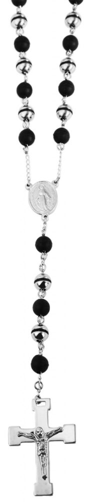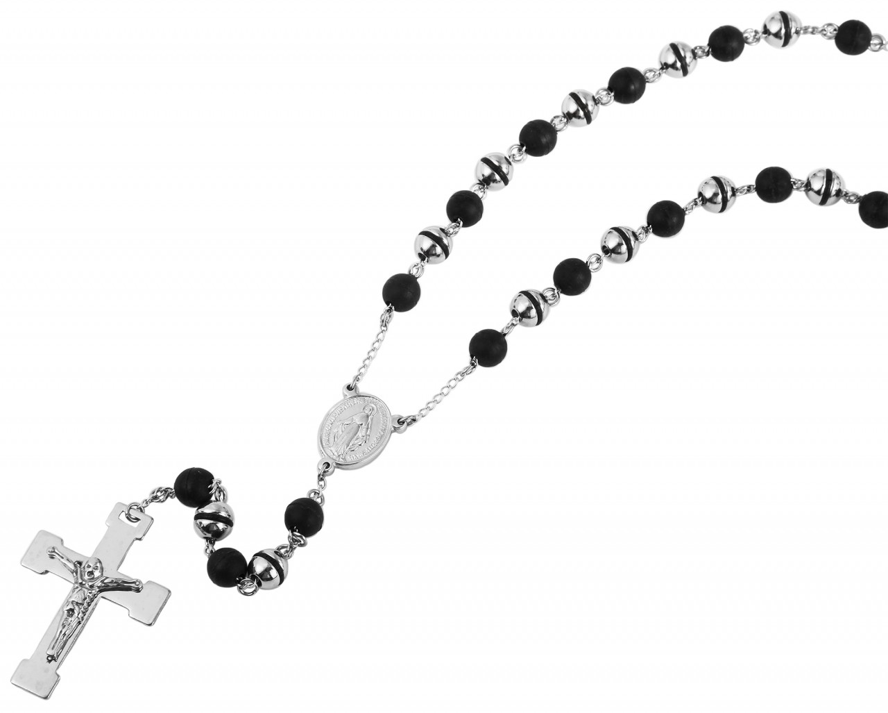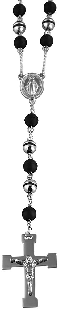 A corrente de rosário da marca Akzent é feita de aço inoxidável. O material garante uma longa vida útil do colar. A corrente está disponível em prateado e preto. O comprimento da corrente é de 80 cm. A espessura da corrente é de 8 mm. O colar também possui um pingente de aço inoxidável. O tamanho do pingente resulta da largura de 31 mm e da altura de 44 mm. O pingente é prateado.