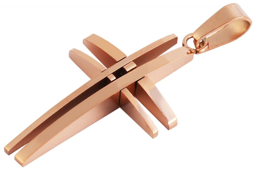 O pingente da marca Akzent em forma de cruz é feito em aço inoxidável. Este material promete uma longa vida útil. A cruz ligeiramente arqueada consiste em duas vigas verticais e horizontais. As dimensões são: comprimento 36 mm, largura 20 mm e espessura 5 mm.