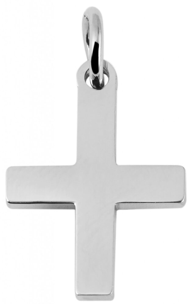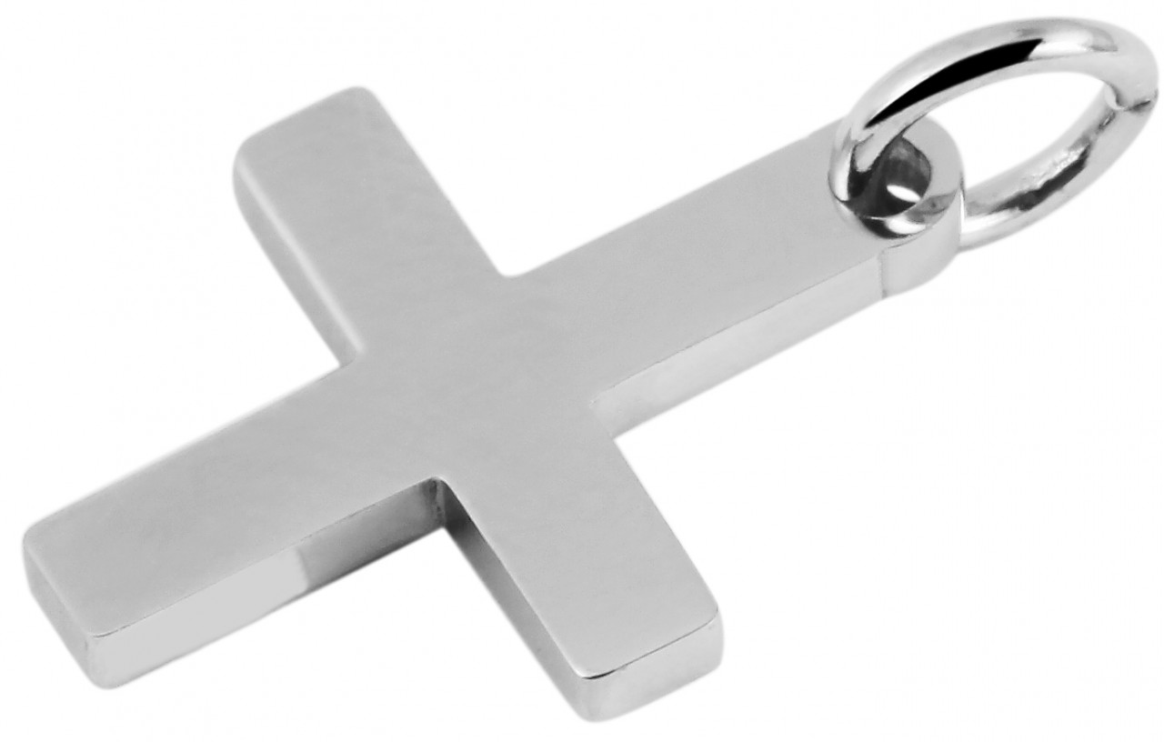 O pingente da marca Praktik em forma de cruz é feito de aço inoxidável e na cor prata. O pingente de cruz pode ser fornecido com pequenas gravuras de qualquer tipo. As dimensões do pingente são 18 mm de comprimento, 13 mm de largura e 1 mm de espessura.
