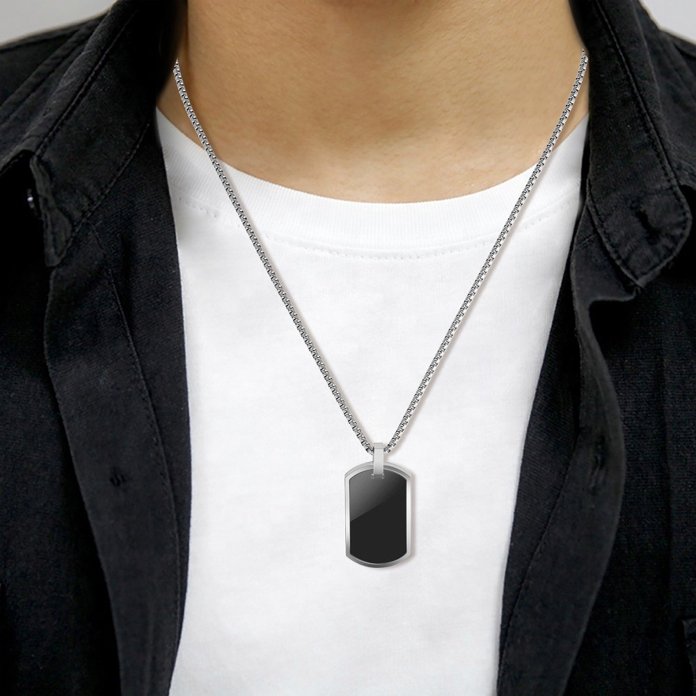 Akzent® Colar com Pingente Preto Gravável em Aço Inoxidável - 61 cm