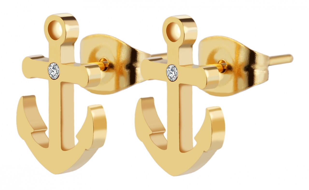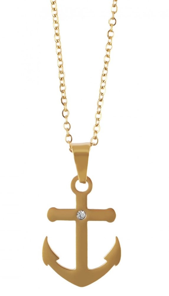 O conjunto de joias, composto por brincos e pingente correspondente com corrente em desenho de âncora marítima, foi feito de aço inoxidável. Os brincos com o popular motivo de âncora são adornados com uma pedra similite branca. Têm comprimento de 12 mm, largura de 8,5 mm e espessura de 1,5 mm. Os brincos podem ser presos ao orifício da orelha com um parafuso borboleta. A porca de silicone fornece suporte adicional. O pingente correspondente com uma corrente de 43 cm de comprimento, que pode ser estendida em mais 5 cm, combina muito bem com os brincos de âncora. O pingente âncora também é decorado…