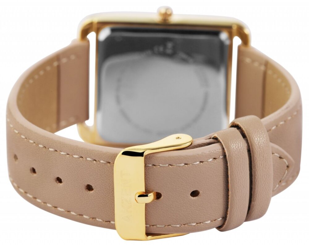 O relógio de pulso feminino da Akzent Exclusive apresenta um movimento de quartzo de alta qualidade. A pulseira de couro sintético tem 20 mm de largura nas hastes e pode ser aberta e fechada com uma fivela de pino. O comprimento total do relógio é de 23,5 cm. A caixa de metal com vidro mineral mede 32 mm de largura e 40 mm de comprimento. A altura da caixa é de 8 mm. A caixa traseira é feita de aço inoxidável e o relógio é resistente à água até 3 bar. Um destaque visual é o mostrador, que é decorado no meio com um círculo brilhante de 15 mm de diâmetro. Os ponteiros e índices são feitos na cor da caixa.