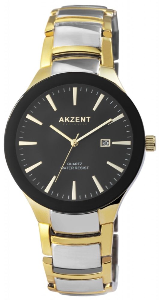 O relógio de pulso analógico de 3 ponteiros para homem da marca Akzent Exclusive possui um movimento de quartzo de alta qualidade. A pulseira de metal tem 23 mm de largura na alça e pode ser aberta e fechada com um fecho de clipe. O comprimento total do relógio é de 22 cm. A caixa de metal com vidro mineral tem um diâmetro de 42 mm e uma altura de 9 mm. O fundo da caixa é feito de aço inoxidável e o relógio tem resistência à água de 3 ATM. Um destaque visual é a borda espelhada preta de 3 mm de largura no vidro, que confere ao relógio uma aparência particularmente elegante. O mostrador é simples e os ponteiros e os números têm a mesma cor. Eles combinam bem com a aparência geral do relógio.
