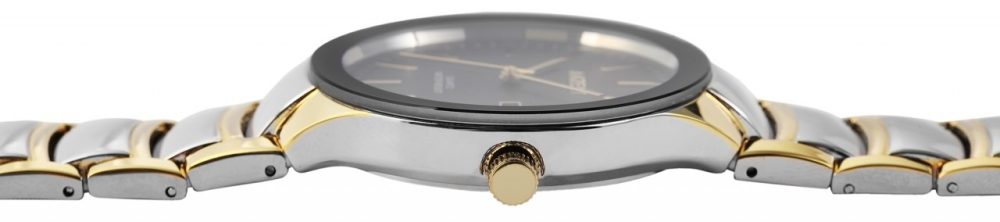 O relógio de pulso analógico de 3 ponteiros para homem da marca Akzent Exclusive possui um movimento de quartzo de alta qualidade. A pulseira de metal tem 23 mm de largura na alça e pode ser aberta e fechada com um fecho de clipe. O comprimento total do relógio é de 22 cm. A caixa de metal com vidro mineral tem um diâmetro de 42 mm e uma altura de 9 mm. O fundo da caixa é feito de aço inoxidável e o relógio tem resistência à água de 3 ATM. Um destaque visual é a borda espelhada preta de 3 mm de largura no vidro, que confere ao relógio uma aparência particularmente elegante. O mostrador…