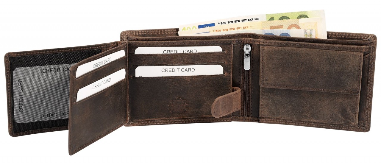 - Tem 6 compartimentos para cartões de crédito, 2 compartimentos para notas, 1 compartimento para moedas com fecho de pressão, 1 compartimento interno com zíper, 2 bolsos internos e 3 bolsos transparentes para documentos de identidade, e um fecho de pressão extra interno mantém seus cartões seguros.